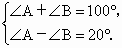 在△ABC中,∠C=80°,∠A-∠B=20°則∠B=________.